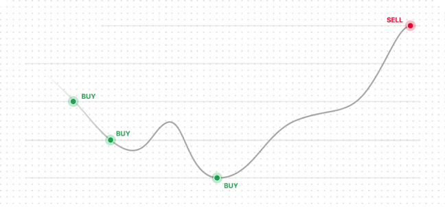 Automatically lowers your average entry price during dips, allowing you to exit with profit faster during the first recovery.